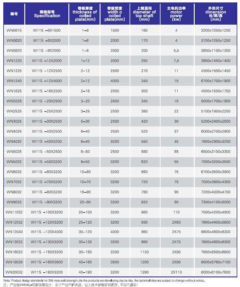 上輥萬能式卷板機,引進日本技術生產,上輥可以垂直升降也可以水平方向移動。采用上輥直接加壓方式,可以控制板材剩余直邊的長度和形狀??梢跃碇贫喽位⌒?、方形、圓形、錐形、等工件。